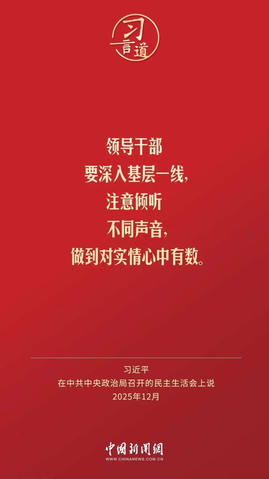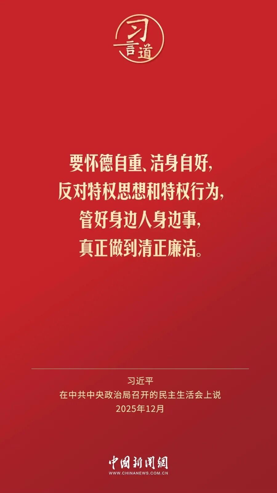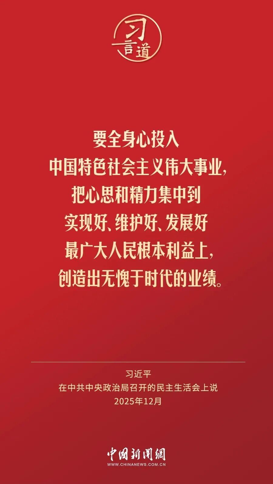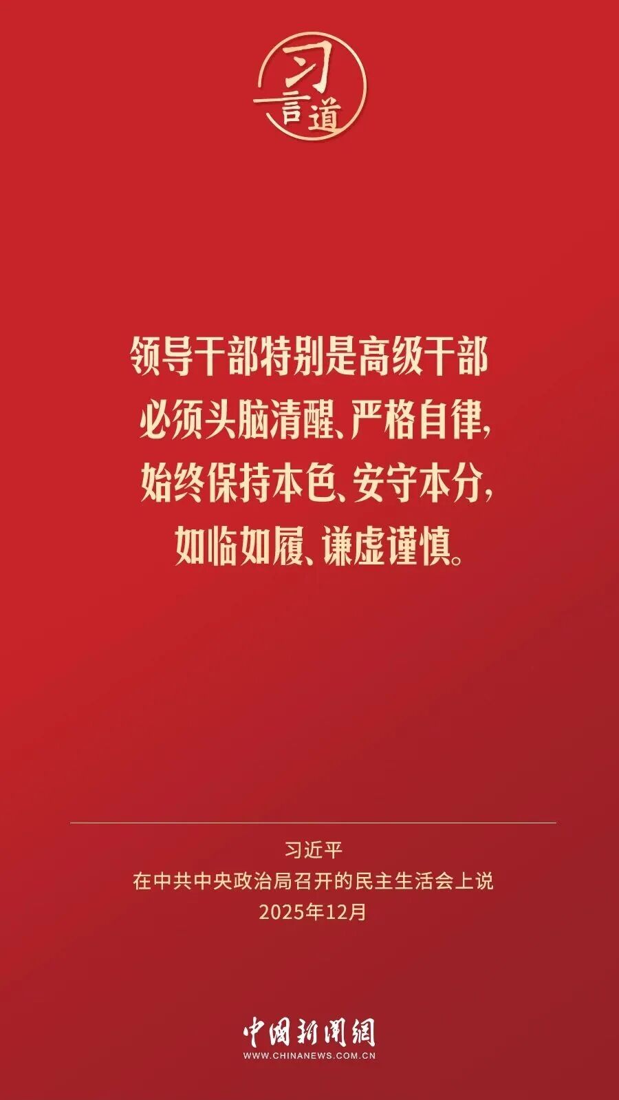 12月25日至26日,中共中央政治局召開民主生活會,中共中央總書記習近平主持會議并發(fā)表重要講話。習近平強調(diào)——