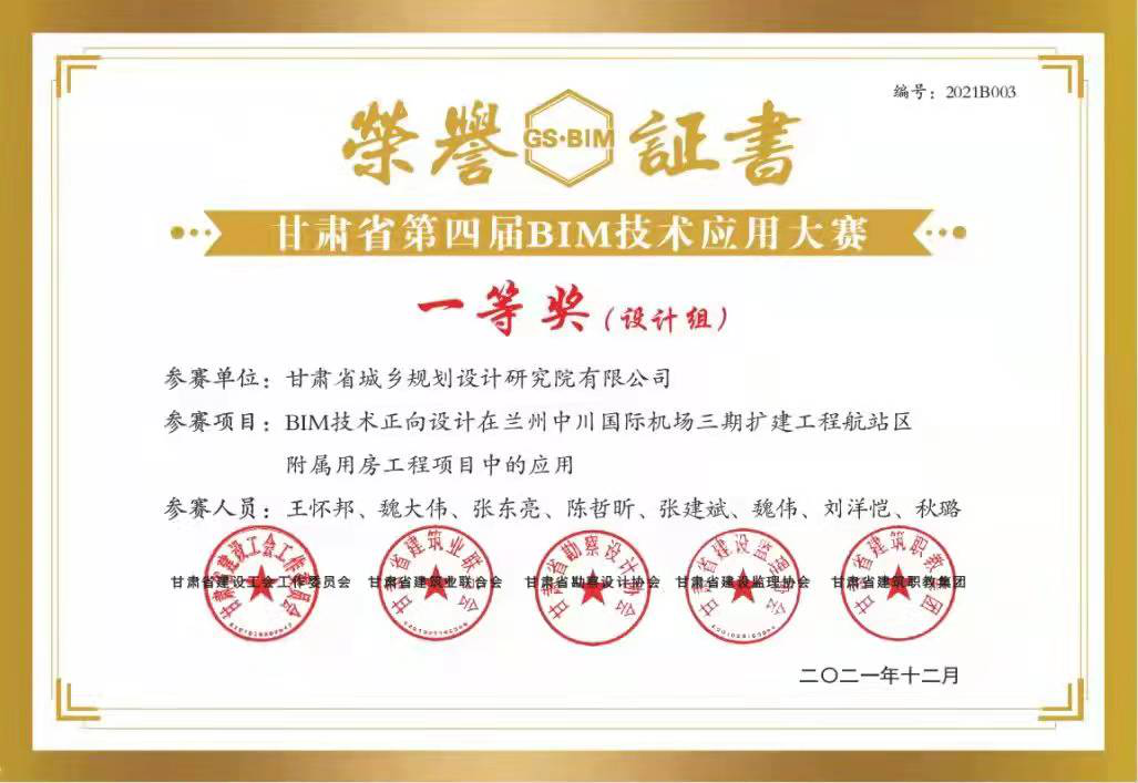 日前,甘肅省建設(shè)工會工作委員會、甘肅省建筑業(yè)聯(lián)合會、甘肅省勘察設(shè)計協(xié)會、甘肅省建設(shè)監(jiān)理協(xié)會、甘肅省建筑職教集團聯(lián)合舉辦的“2021年甘肅省職工職業(yè)技能競賽暨甘肅省第四屆BIM技術(shù)應(yīng)用大賽”評選結(jié)果揭曉,甘肅省城鄉(xiāng)規(guī)劃設(shè)計研究院有限公司“BIM技術(shù)正向設(shè)計在蘭州中川國際機場三期擴建工程航站區(qū)附屬用房工程項目中的應(yīng)用”獲得“BIM技術(shù)應(yīng)用作品征集”比賽設(shè)計組一等獎;甘肅省建筑設(shè)計研究院有限公司“甘肅省臨洮體育訓(xùn)練基地二期建設(shè)(滑冰館)項目BIM技術(shù)在總承包管理中的綜合應(yīng)用”獲得二等獎,“緣善智慧港BIM項目”獲得三等獎;甘肅省建設(shè)監(jiān)理有限責(zé)任公司李燕燕獲得“BIM技術(shù)技能比賽”三等獎。