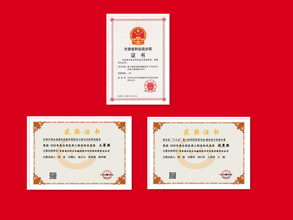 科研成果在工程實(shí)踐中開花結(jié)果,多個(gè)項(xiàng)目獲技術(shù)表彰獎(jiǎng)勵(lì):《民勤縣紅崖山水庫加高擴(kuò)建工程》獲甘肅省優(yōu)秀工程勘察設(shè)計(jì)一等獎(jiǎng);《石羊河流域重點(diǎn)治理項(xiàng)目西營(yíng)河專用輸水渠工程》《古浪縣生態(tài)移民暨扶貧開發(fā)黃花灘項(xiàng)目水利骨干工程》《大通河納子峽水電站工程地質(zhì)勘察》《昌馬水庫樞紐工程地質(zhì)勘察》分別獲甘肅省優(yōu)秀工程勘察設(shè)計(jì)二等獎(jiǎng);《甘肅中部生態(tài)移民扶貧開發(fā)供水工程可行性研究報(bào)告》獲全國優(yōu)秀工程咨詢成果獎(jiǎng)三等獎(jiǎng);《清水縣“十三五”第二批光伏扶貧電站項(xiàng)目》獲全國優(yōu)秀工程咨詢成果獎(jiǎng)優(yōu)秀獎(jiǎng)。