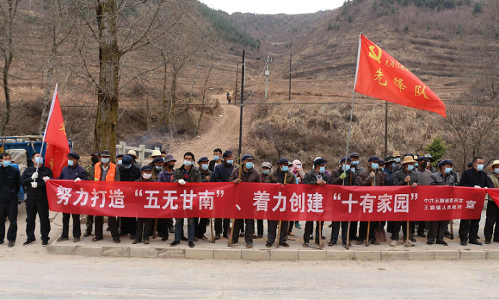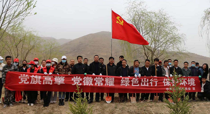2022年4月,根據(jù)王旗鎮(zhèn)安排,駐村幫扶工作隊員會同其他鎮(zhèn)村干部組織群眾數(shù)十人,在洮河西岸磨溝段開展了以“黨旗高擎、黨徽常耀、綠色出行、保護環(huán)境”為主題的義務植樹活動,共栽下4000余棵松樹苗,掀起了植樹造林的熱潮。