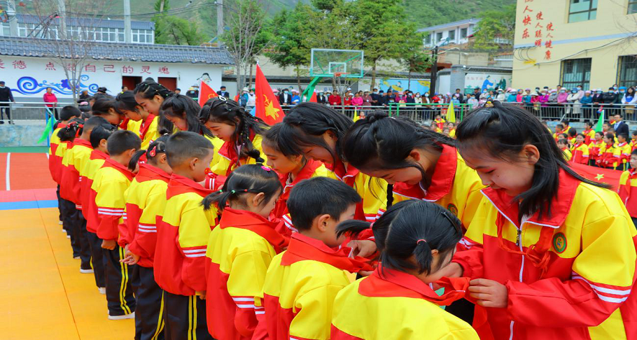 活動(dòng)現(xiàn)場,在莊嚴(yán)激昂的國歌聲中舉行了升國旗儀式。簡單而又隆重的入隊(duì)儀式上,鮮紅的隊(duì)旗迎風(fēng)飄揚(yáng),隨著入隊(duì)隊(duì)員名單的宣布,許多一年級(jí)的同學(xué)成為了光榮的中國少年先鋒隊(duì)隊(duì)員,并由高年級(jí)的少先隊(duì)員為他們戴上了鮮艷的紅領(lǐng)巾。隨后,大隊(duì)輔導(dǎo)員帶領(lǐng)新隊(duì)員宣誓,響亮的呼號(hào)聲“時(shí)刻準(zhǔn)備著”響徹校園上空,集中展示了新時(shí)代少先隊(duì)員積極向上的精神風(fēng)貌,全體師生為他們送上最深的祝福。最后,新隊(duì)員代表發(fā)言,標(biāo)準(zhǔn)的隊(duì)禮、堅(jiān)定的眼神、稚嫩的聲音表達(dá)了最大的決心,號(hào)召全體新隊(duì)員要在星星火炬的指引下刻苦讀書,從小聽黨話、感黨恩、跟黨走,努力成長為中國特色社會(huì)主義事業(yè)建設(shè)者和接班人。