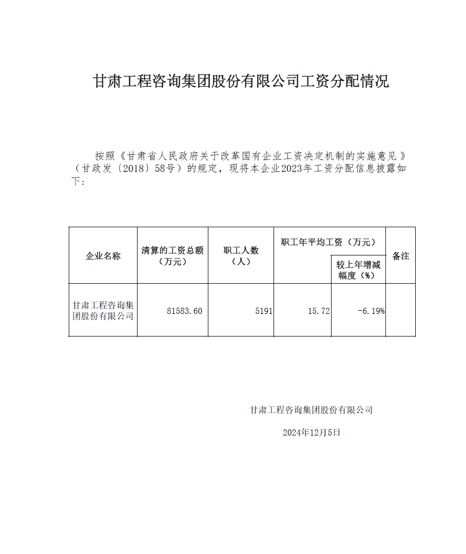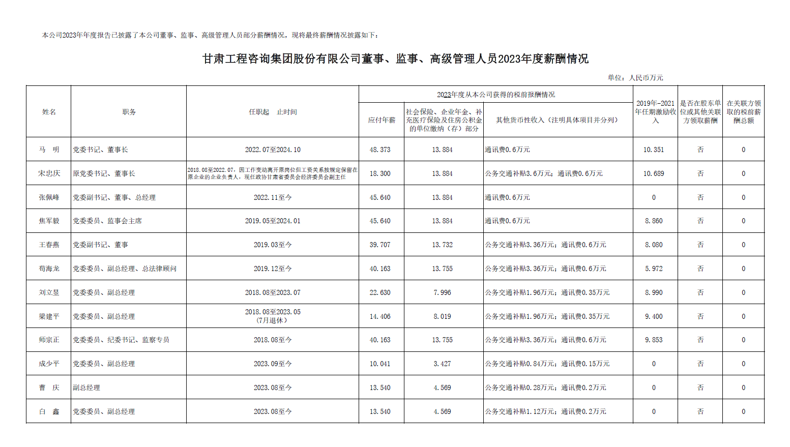 甘肅工程咨詢集團股份有限公司董事、監(jiān)事、高級管理人員2023年度薪酬情況及甘肅工程咨詢集團股份有限公司工資分配情況