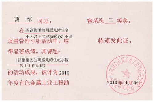 酒鋼集團蘭州雁兒灣住宅小區(qū)巖土工程勘察