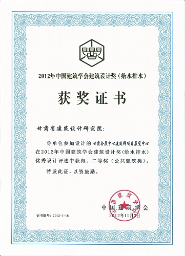 2012年中國建筑學(xué)會設(shè)計獎甘肅會展中心(給排水)